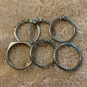 The rings are actually smaller than the description in the pictures. All of the rings are about a 7 or less. They were cute and it’s too bad I couldn’t fit them.