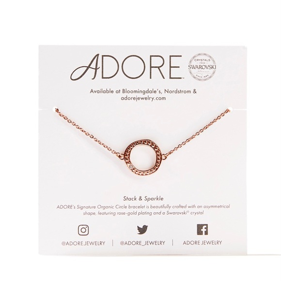 Add some sparkle to your wrist. Bracelet features a unique circle design, a rose gold-plated chain, and a shining Swarovski crystal.