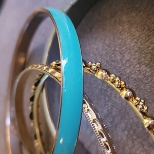 Stack of Four Goldtone Teal Bangle Bracelets