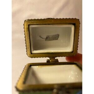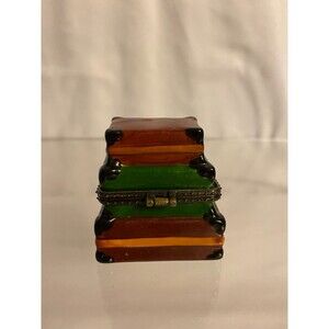 This is a Vintage stack of three suitcases porcelain hinged trinket box. The clasp does not hold.