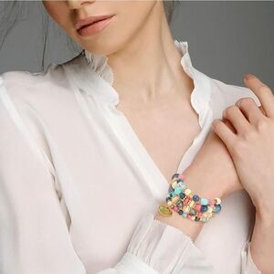 - Made Of Top Material: Metal, Acrylic Beads. Elastic Band Approximately 4 Inches In Diameter. Bracelet For Everyday Wear Or Any Important Occasion.