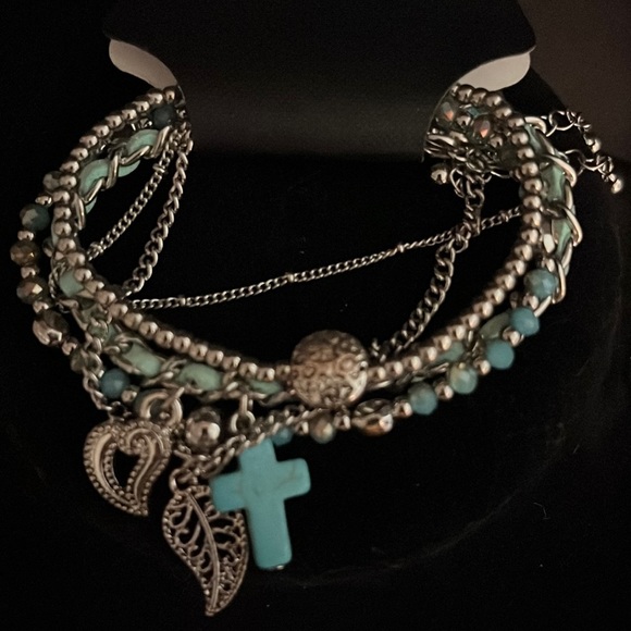 Turquoise Colored and Silver-tone stackable Bracelets