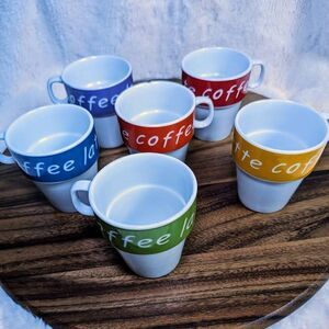 Stackable Coffee Latte Mugs Multi-Color Rainbow 6 pc Coffee Mugs with Rack Set