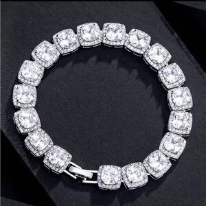 - Stackable Full Crystal 13mm cushion cut with halo Tennis Chain Bracelet …