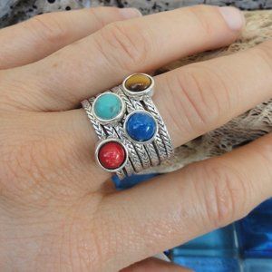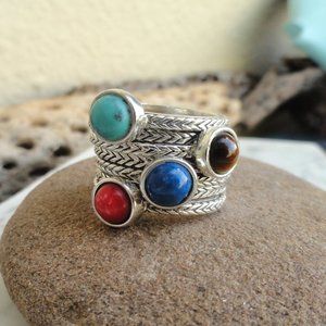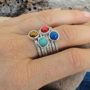 #lapislazuli .. #tigereye .. #coral .. #turquoise .. #stackablerings