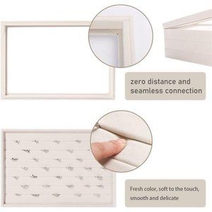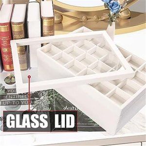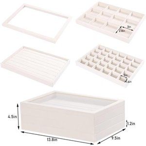 🧿It is made of beige velvet,the set include glass lid, 100slots tray,12grid and 24grid tray