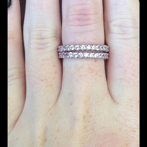Absolutely gorgeous soft pink matching eternity rings! Each ring has 1.20 carats of pink sapphires and are set in 14k white gold. Total carat weight for both rings=2.40 carats of pink sapphires! They are for a finger size 6 1/2, and cannot be sized. Make me an offer, never worn! Willing to sell just one for $1,300.00 or the pair for $2,400.00.