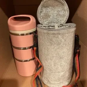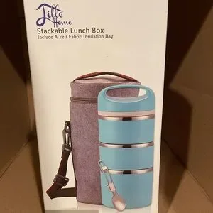 Lille Home Stackable Lunch box (Pink) with felt fabric insulation bag