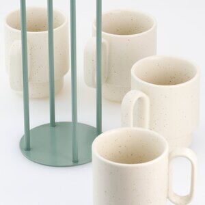 Stackable Coffee Mugs with Green Stand Rack 4x10oz Ceramic Mugs with Unique Sprinkled Optics