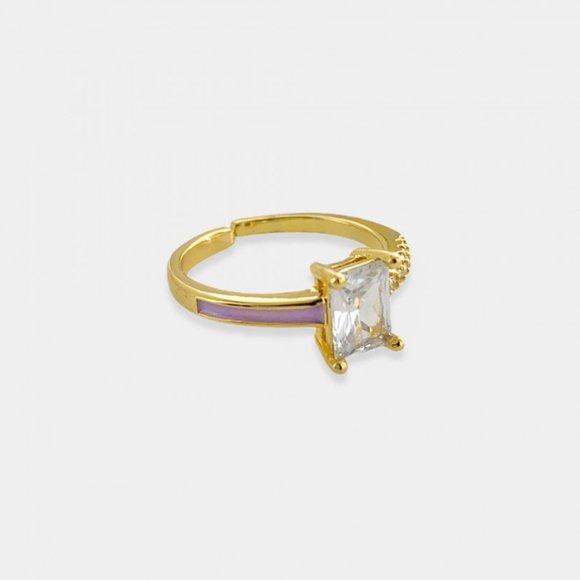 Stackable ring. Gold on one side and liliac on the other. Plated ring. Adjustable
