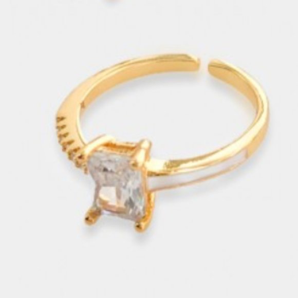 Cute little dainty adjustable ring. Plated. White on one side and gold on the other side.