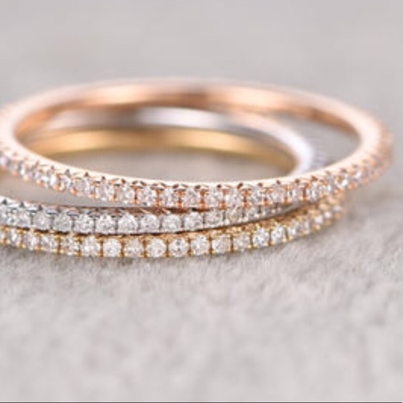 **rose gold**silver**gold* Thin band ring with genuine 18kt over Stainless Steel & CZ Bands in Silver, Gold or Rose Gold. Excellent quality, durable and perfect for stacking or wearing alone. Size 6. 7 , 8 or 9. Select color and size at check out. . A great ring and less than $30!!