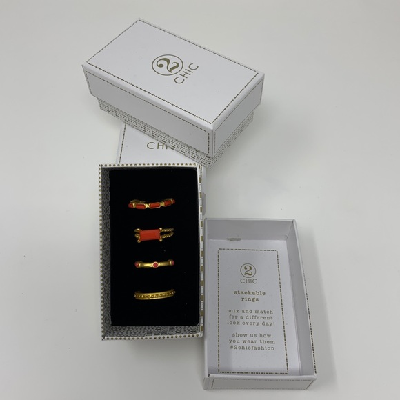 Gorgeous coral colored stackable rings, size 8, new