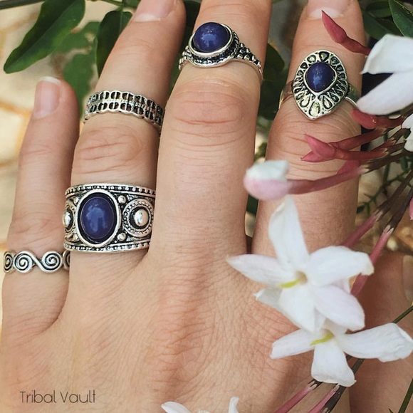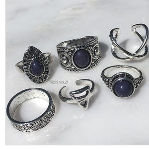 Stackable Silver Rings with Dark Blue solid stone(comes in a 6 pc set)