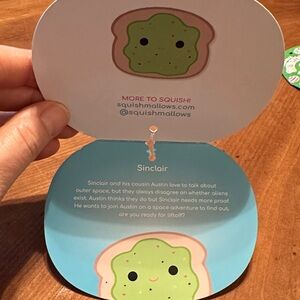 This plush toy is Sinclair the Avocado Toast, a stackable Squishmallow.