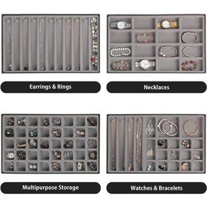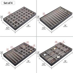 🧿[Set of 4] Each tray has 40, 11, 21, and 16 compartments for displaying all your necklaces, earrings, bracelets, rings, brooches, or watches (*Each tray sold separately as well).