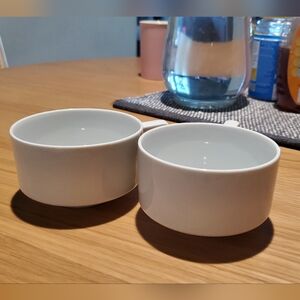 Elegant stackable coffee mugs in classic white. Perfect for any kitchen.