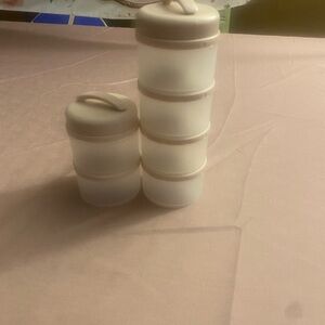 Keep your kitchen organized with these stackable white food storage containers. Perfect for storing snacks, spices, or leftovers.