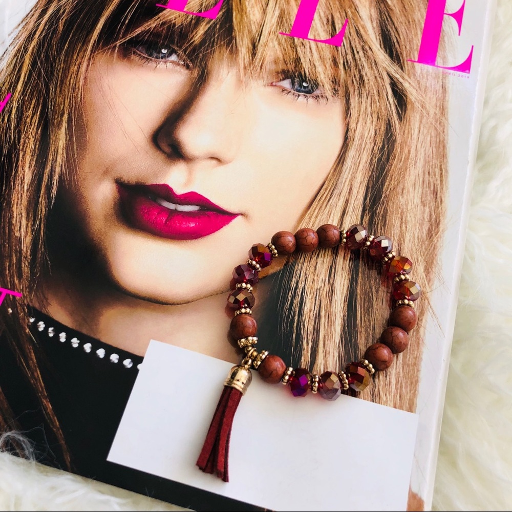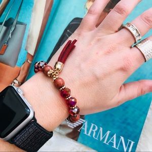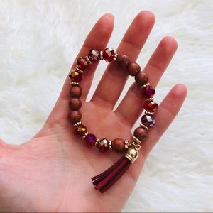 Stackable beaded and jeweled bracelet with leather tassel n perfect condition never been worn