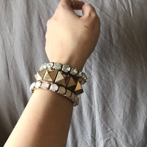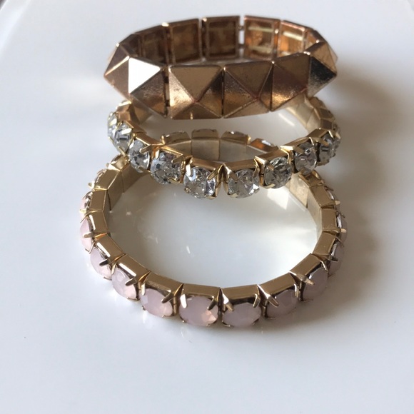 Feminine stackable bracelets. Elastic shown in photos
