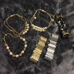 3 bracelets; gold tone, silver tone and gemstone only. They are great to wear all together or each one separate.