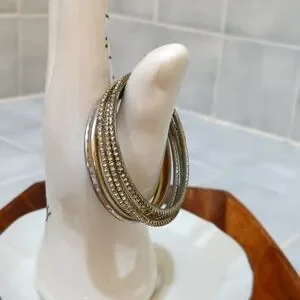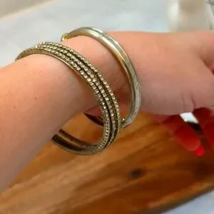 stackable silver brackets, 3 with cz and 1 with a spring clasp.