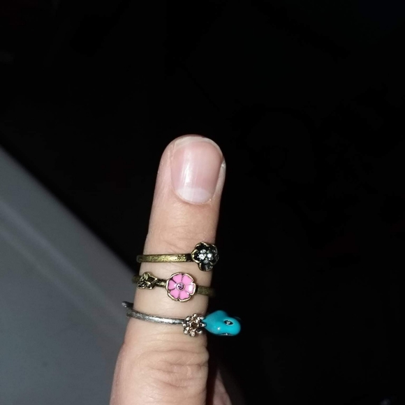 Bronze plated stackable set of 3 rings with bird and flower theme. Size 8.