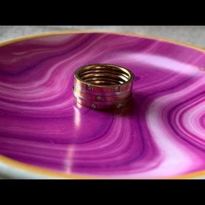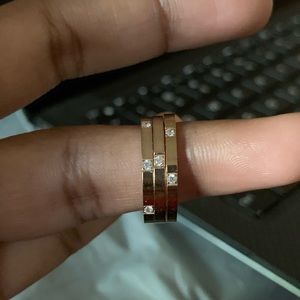 rose gold and silver stackable rings. Extremely cute stackable rings , you can style them anyway you like. Very chic. Looks good in person than in pic. Size 6. They’re used. Doesn’t stain the finger.