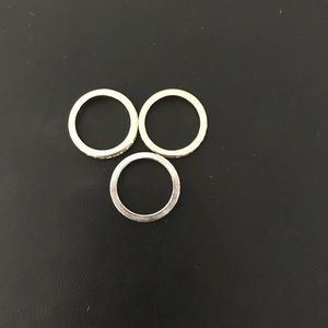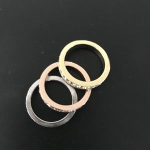 White, yellow, and rose gold stackable rings. It said size 7, but to me, it feels like 6.5