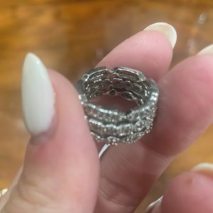 Set of 3 stackable silver rings. Cubic zirconia diamond with no missing stones. In great condition.