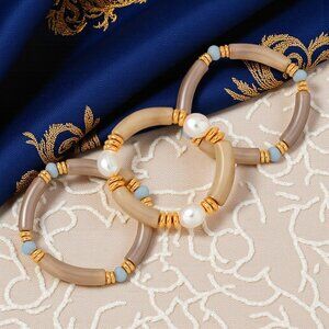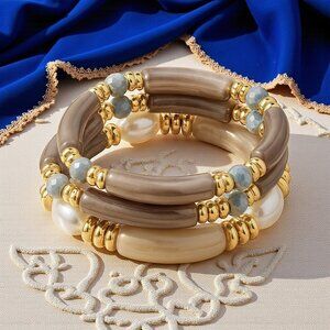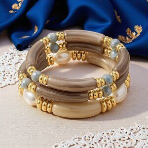 🆕Stacked Acrylic Bracelets w/ Pearls Chunky Retro Y2K Look Boho Luxe Vibe