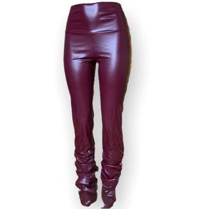 Stacked Faux Leather Pants- Available in Black & Burgundy