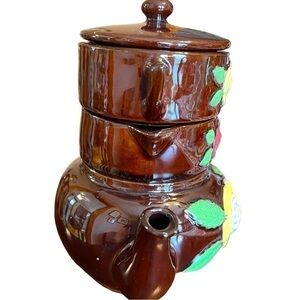 Stacking teapot set, vintage red ware glazed pottery, marked Japan, no chips