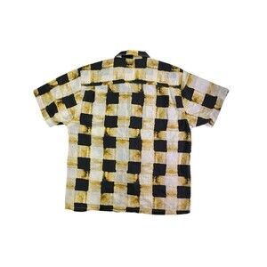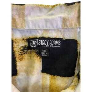 Elevate your wardrobe with this stylish Stacy Adams men's shirt in size 2XL. The short-sleeved button-up shirt features a classic open collared neckline and a versatile multicolor pattern in black, white, and yellow. Made from a premium blend of cotton and linen, this shirt ensures comfort and breathability for any occasion, whether it's for travel, a party, a cocktail event, or casual outings.