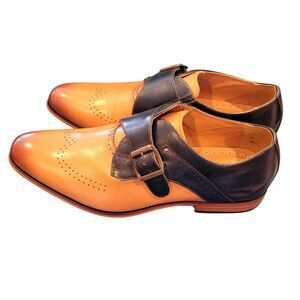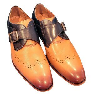 Stacy Adams 2 Tone Oxford Brown Black Single Monk Strap size 10.5 Shoes Slip On