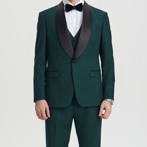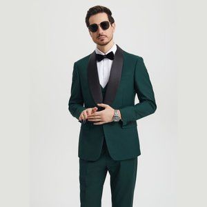 Stacy Adams 3pc Mens Tuxedo Hybrid Fit Shawl Lapel, Green