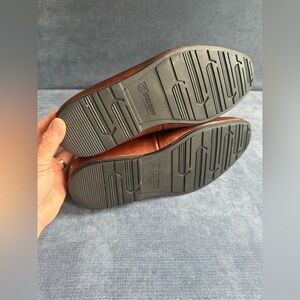 Stacy Adams Brown Leather Loafers Mens SZ 9.5M Slip On Chain Accent Professional