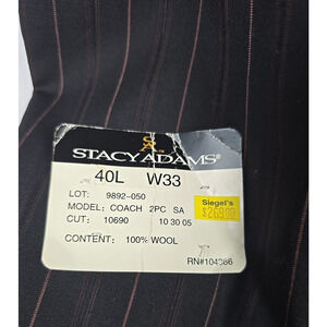 Stacy Adams Coach Men's Blazer Suit Jacket 40L Dark Brown/mauve Pinstripe - NWT