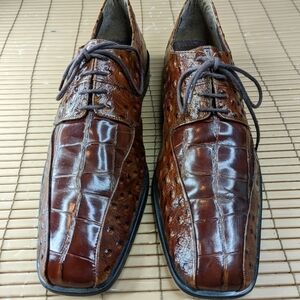 Stacy Adams Cognac Alligator/Ostrich Print Leather Loafers Sz 9.5M.