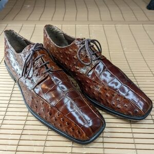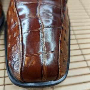 Stacy Adams Cognac Alligator/Ostrich Print Leather Loafers Sz 9.5M. great condition. 311pm