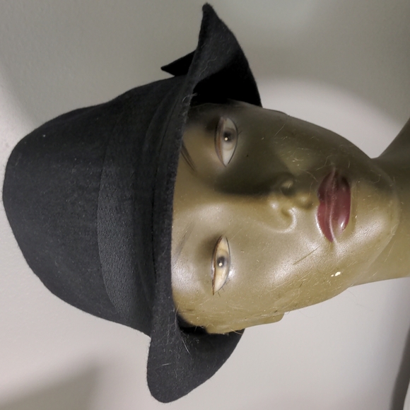 Felt that with grosgrain band, side bow top with lion crest. Interior lining and sweat band.