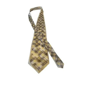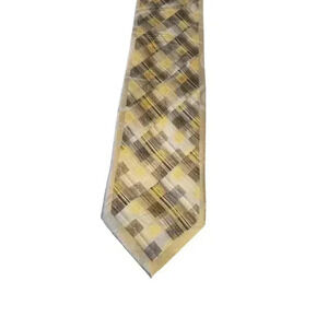 Stacy Adams Luxury Tie Brown Yellow 100% Silk Necktie Handmade Abstract Business