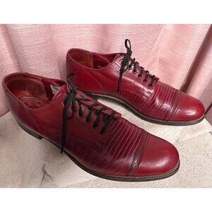 Stacy Adams Men's Red Leather Dress Shoes Lizard Cap Toe Oxford Size 11.5D VTG