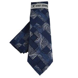 Stacy Adams Men Tie Hanky Navy Royal Blue Charcoal Gray Silver Plaids & Checks