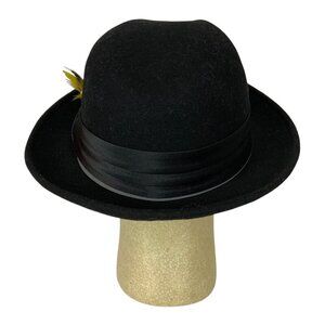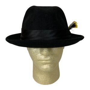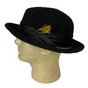 Stacy Adams Mens Black Wool Fedora Hat Satin Band Feather Accent Size XL