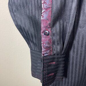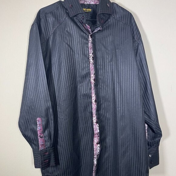 Stacy Adams Men's LS Black & Purple Stripes Button-Up Shirt L Western!