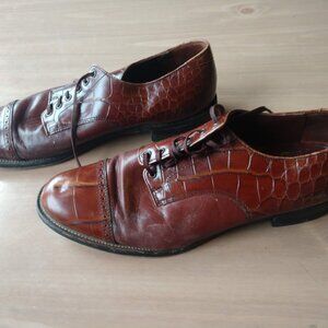 Stacy Adams Men's Size 9.5 Reptile Print Leather Croc Cap Toe Shoes