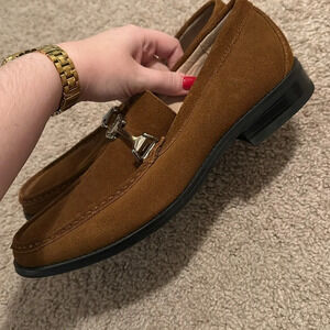Stacy Adams Men’s Sliver Buckle Round Toe Brown Suede Leather Loafers