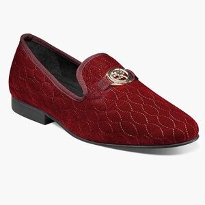 Stacy Adams Mens Valet Red Quilted Velour Velvet Bit Slip On Loafers Sho…