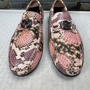 Stacy Adams Mens size 9.5M Pink Snake Print Loafers Metal Accent Leather Lining
